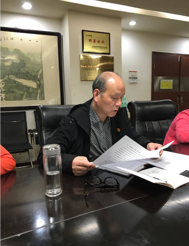 會(huì)上黨委書記李耀民提到,今年的十九大與以往的黨代會(huì)不同,學(xué)習(xí)氛圍也不同,集中學(xué)習(xí)后,都應(yīng)該自行拿十九大報(bào)告原文進(jìn)行細(xì)學(xué)深學(xué),將十九大精神落實(shí)到企業(yè)自己的事情上,企業(yè)的發(fā)展,企業(yè)的黨建均要密切聯(lián)系十九大精神的指導(dǎo)??偨?jīng)理黃家麟號(hào)召,要振奮精神,要有信心,下一步的工作任務(wù)比較重,要具體做好,幾家廠房的招商工作都需要加緊。黨委副書記李軍提出,社會(huì)政治進(jìn)入新時(shí)代,前五年是打基礎(chǔ),從各方面進(jìn)行改革,后五年進(jìn)入新時(shí)代,指導(dǎo)思想就要變。黨的理論知識(shí)學(xué)習(xí)是黨建工作的一項(xiàng)重要內(nèi)容,后期需要進(jìn)一步深化學(xué)習(xí)。3、基層黨組織圍繞學(xué)習(xí)領(lǐng)會(huì)十九大精神開展支部主題黨日活動(dòng)